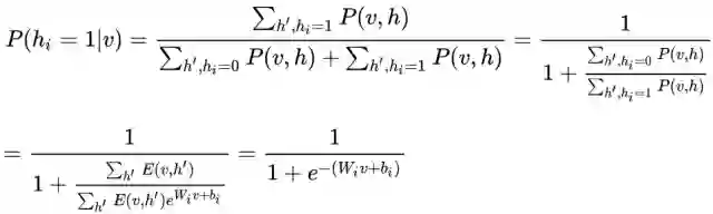 这时候 sigmoid 函数就有了自然的解释:玻尔兹曼分布下隐含层神经元激活的条件概率的激活函数。