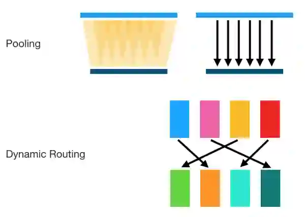 这种 routing 不是静态的,而是动态的(随输入决定的),这是 Pooling 等方式不具备的: