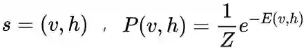 Hinton 看了看神经网络的一层,其分为可见层(输入层)和隐含层(中间层)。按照经典网络的定义,神经元有激活和未激活两个状态。那么干脆让 s 等于可见层 v 并上隐含层 h 神经元的状态吧(默认都用向量的方式表示):