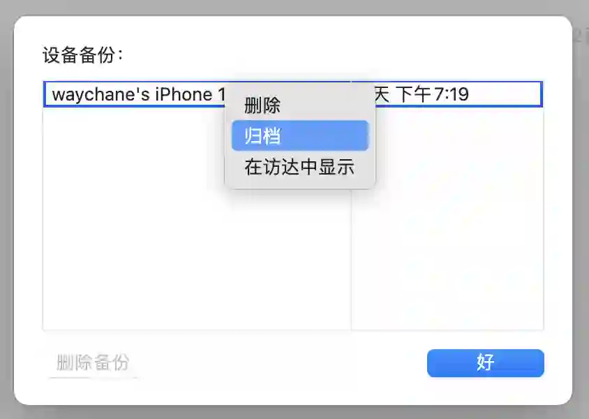 备份完成后,可以点击下方「管理备份」按钮,查看备份记录。右键点击备份,选择归档,确保该备份不会被后续新备份覆盖。然后你就可以安装准备新系统了。