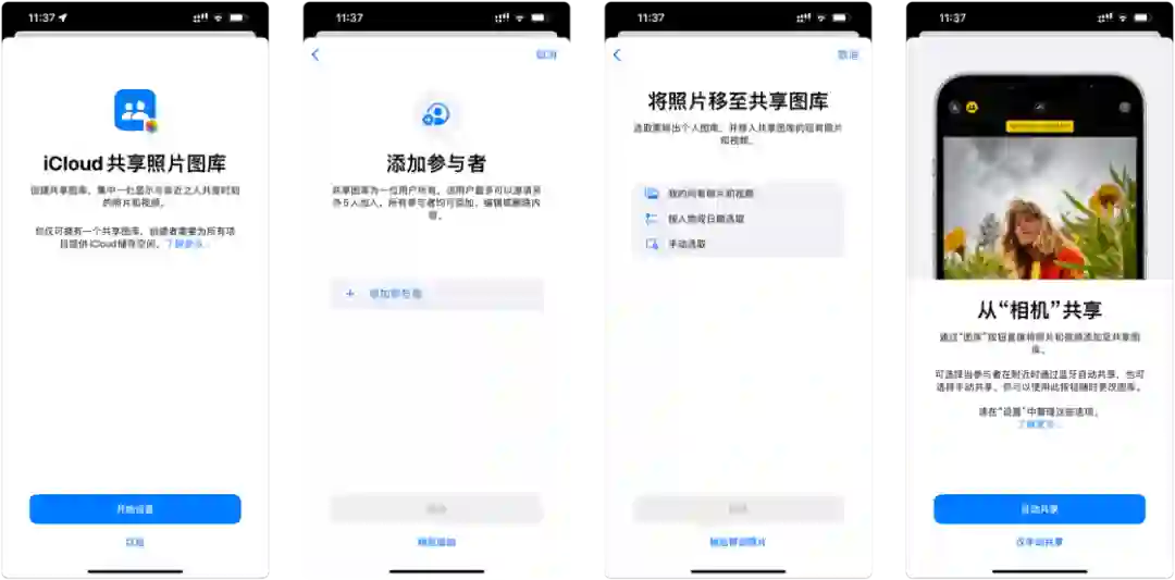 iOS 16 中,家庭共享图库将作为一个单独图库存在,你可以根据开始日期或照片中的人物,选取想要囊括的内容。共享图库设置完成后,你可以在相机 app 中直接共享照片,也可选择当共享图库的成员在附近时自动共享给对方,或是从「为你推荐」中获取智能建议,将照片添加到共享图库中。此外,在相机拍摄时如果选择共享模式,拍摄的照片将会直接共享给家人。