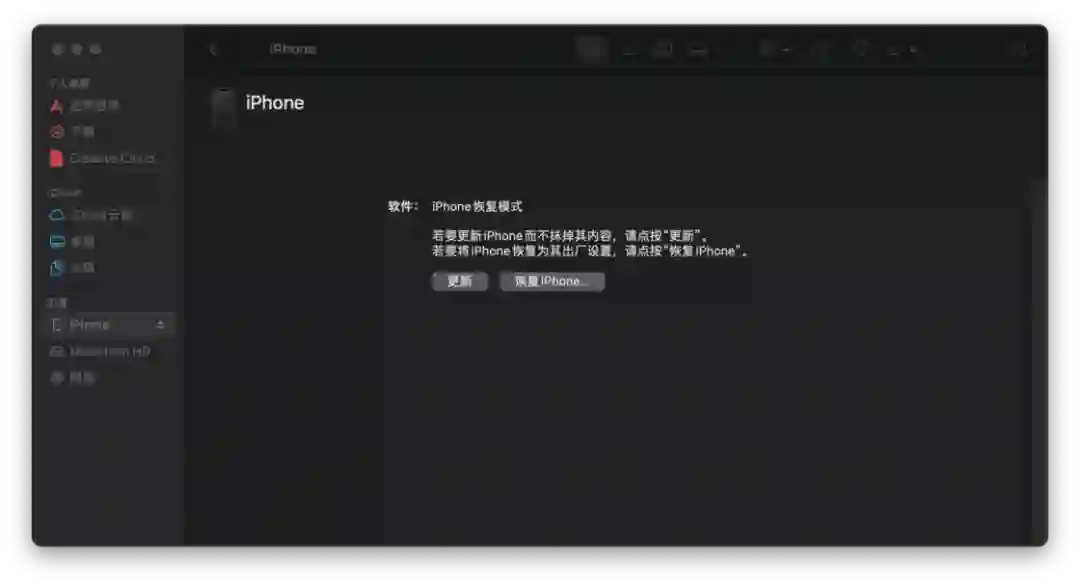 如果你下载了 .ipsw 文件,按住 option 键(Windows 为 Shift 键)并点击「恢复」,选择下载好的 .ipsw 文件;如果没有,直接点击「恢复」选项即可。之后你的手机数据将被抹除,系统将恢复至最新的稳定版本。恢复完成后,你可以继续使用 Finder 或 iTunes 恢复之前备份的设备数据。