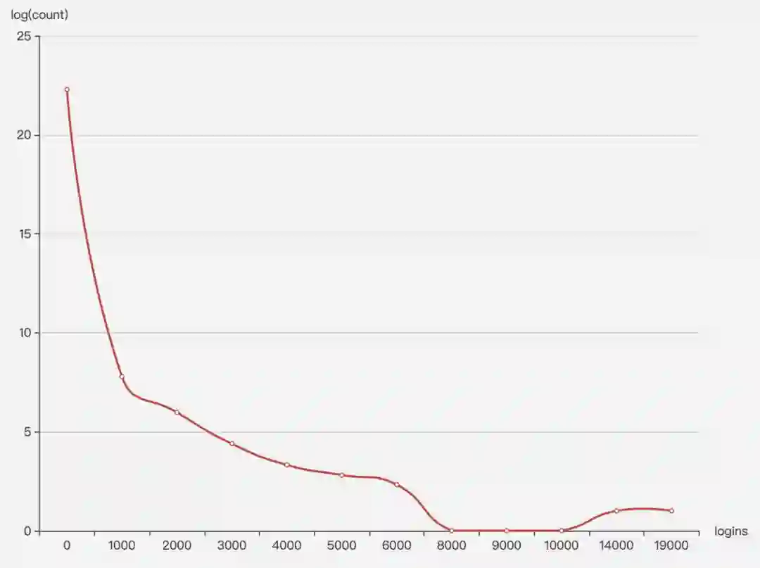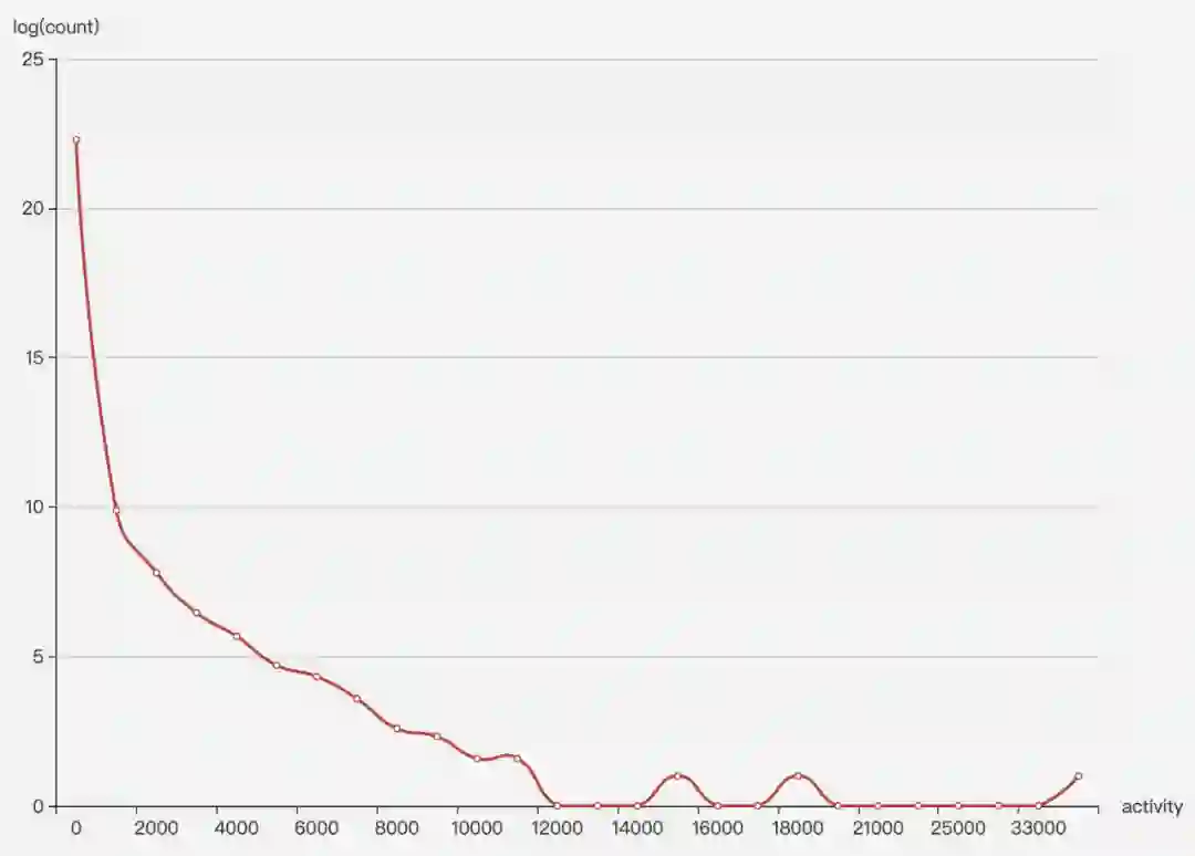 对于这 512 万个项目的活跃开发者人数分布,如下图: