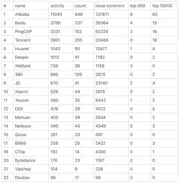 在国内企业的开源数据中,我们可以看到阿里的数据几乎在所有类别里都名列第一,有时甚至是其它公司之和,并且在社区化 / 开放等方面也做得不错。但放到全球角度,出自阿里的知名度相对较高的项目,还是 Apache Dubbo,以及在 2019 年收购而来的大数据流处理框架 Flink。2019 年 9 月在杭州的云栖大会上,阿里宣布贾扬清正式担任阿里巴巴开源技术委员会负责人,开源将明确升级为阿里技术战略之一。
