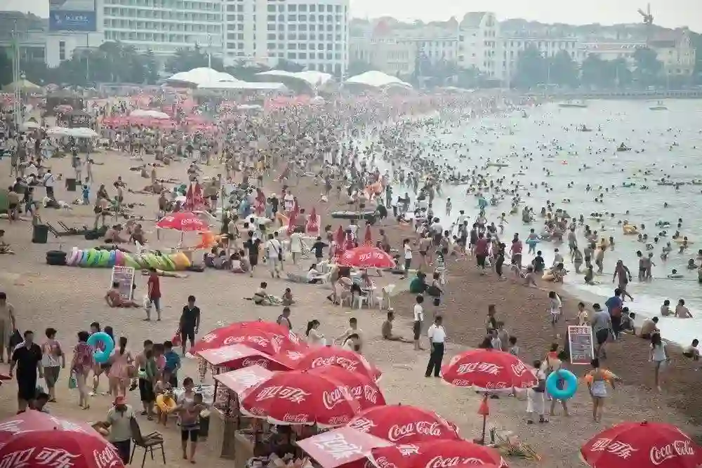 2010年,山东青岛,海滩上的可口可乐印记。Martin Parr / 摄
