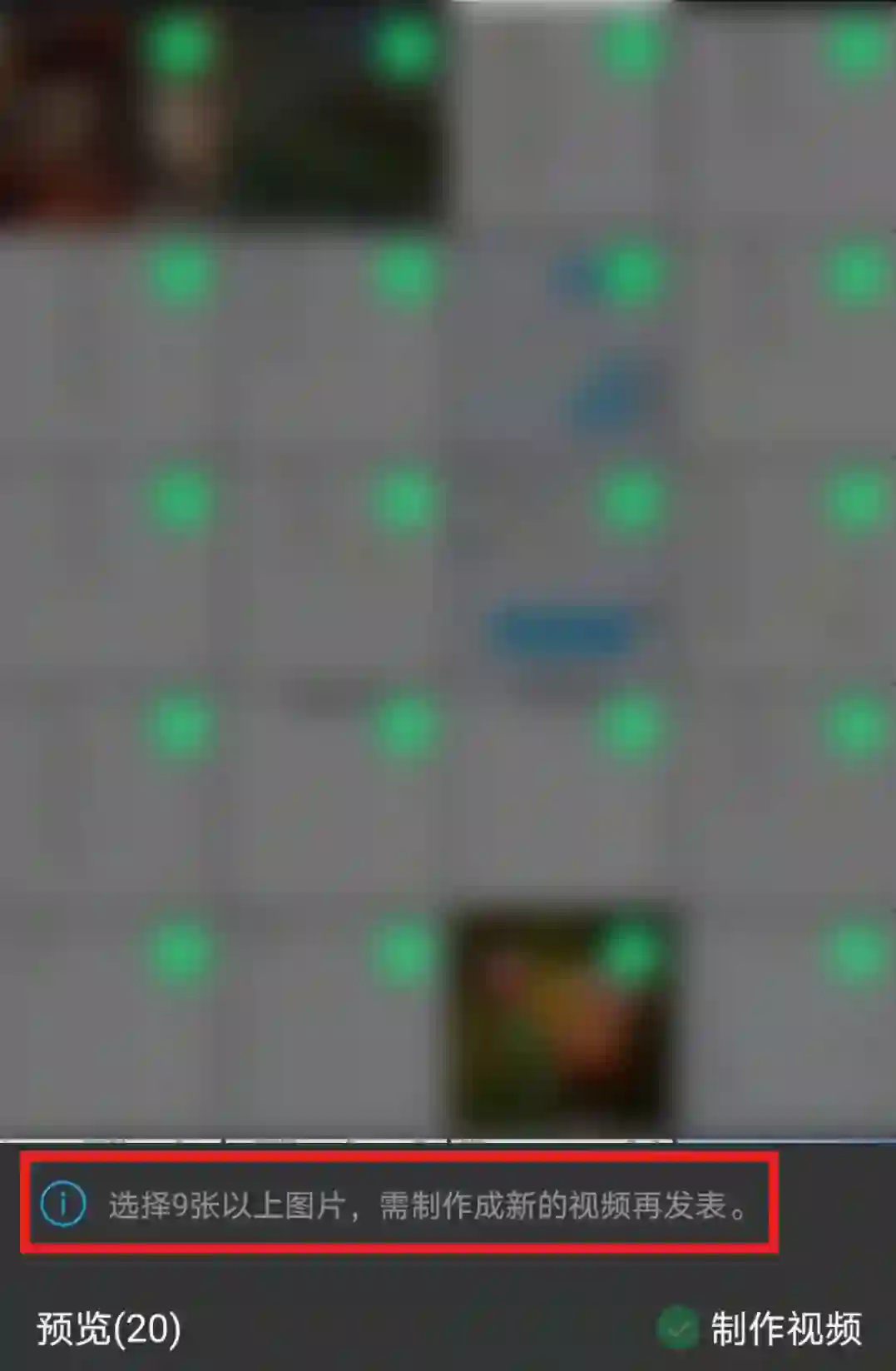 支持朋友圈发送 20 张图片:用户在朋友圈发送图片时,可连续选择 20 张。但是超过 9 张之后,微信会自动将照片生成视频形式,用户可以设置背景音乐及模板。