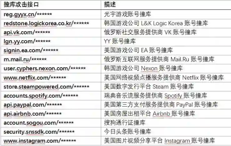 以下是2017年撞库攻击者“钟爱”的一些攻击目标和接口: