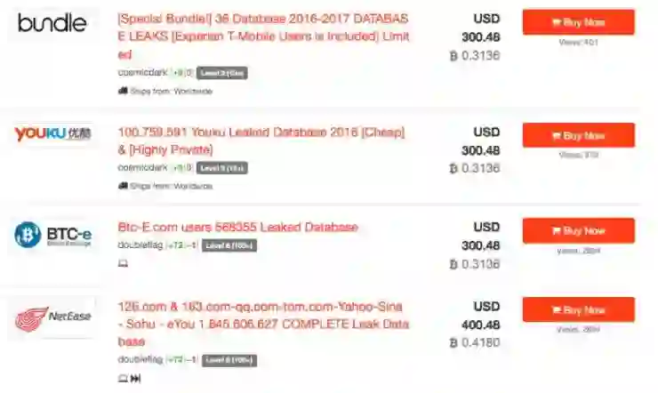 数据窃取与交易是地下产业链隐藏最深的部分,也常有一些定制性的交易,不少黑客通过数据交易来构建庞大的社工库。黑客间的私下交易,我们无法得知,到底有多少网站数据已经被窃取也无法客观的评估。但通过半公开渠道也可管中窥豹,以下是暗网某地下数据交易市场的截图: