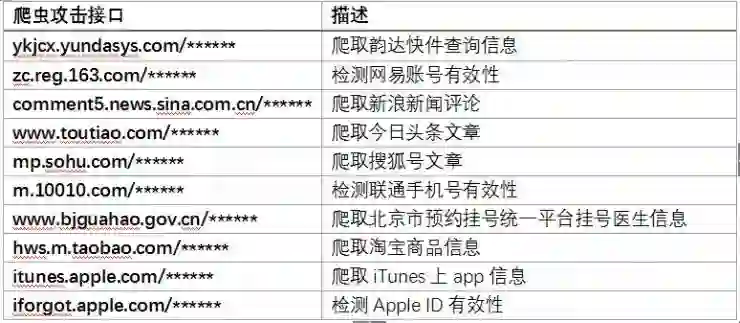 以下是2017年较为热门的一些爬虫攻击目标和接口: