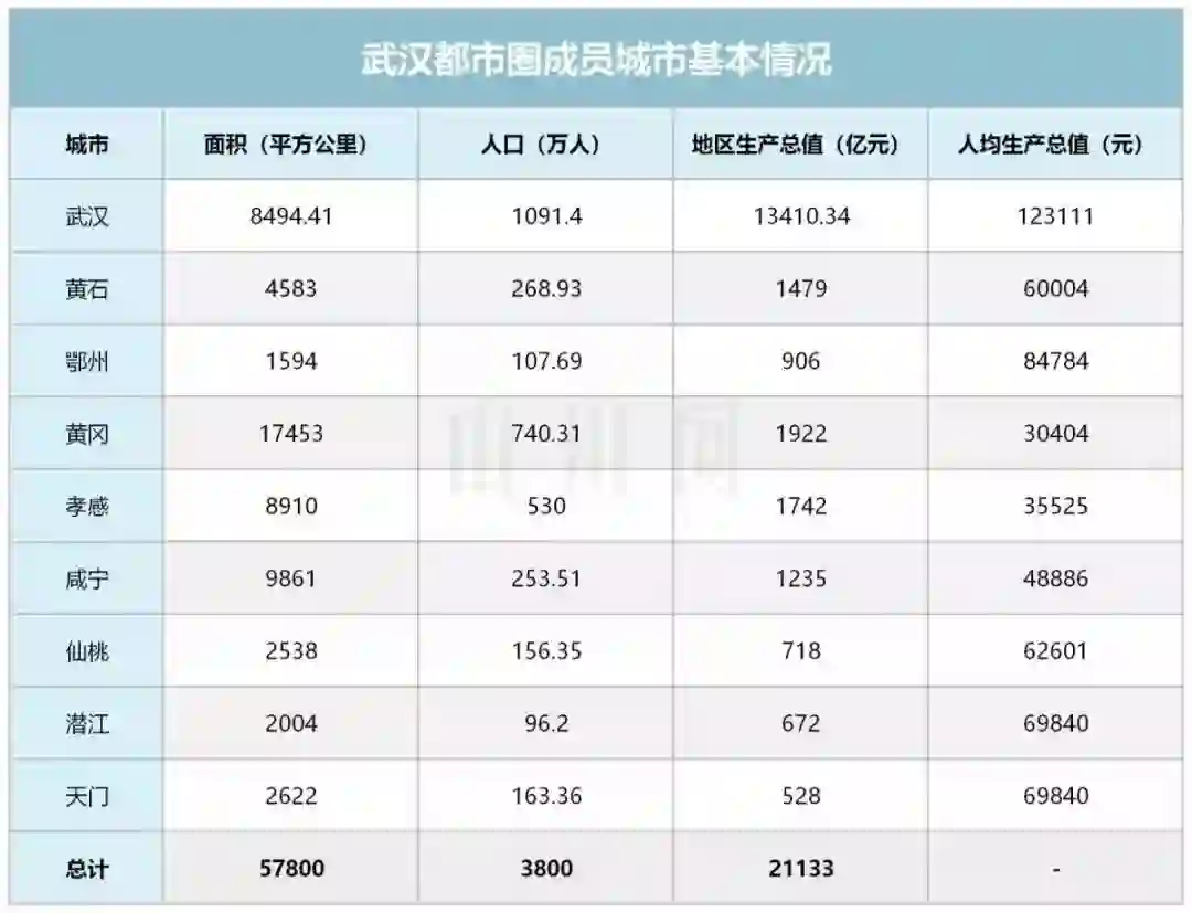 显然,武汉都市圈从GDP总量到人口都是明显第一。郑州次之,长沙只在人均方面有优势。