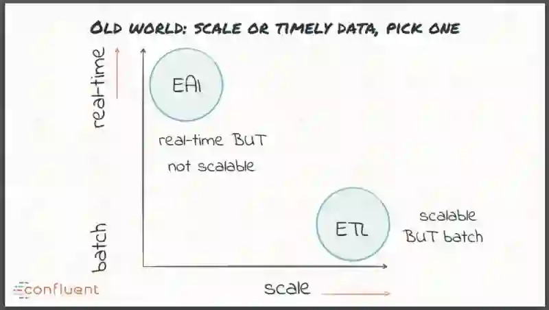 在实时 ETL 方面,早期采用的方式是企业应用集成(Enterprise application integration,EAI),并使用 ESB 和 MQ 实现数据集成。尽管这可以说是有效的实时处理,但这些技术通常很难广泛扩展。这给传统的数据集成带来了两难的选择:实时但不可扩展,或者可扩展但采用的是批处理方案。