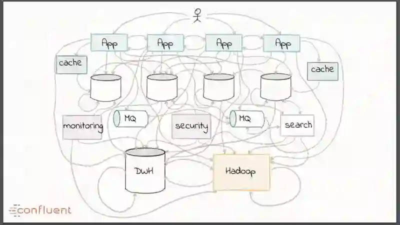 这些趋势所造成的后果就是传统的数据集成方式最终看起来像一团乱麻,比如组合自定义的转换脚本、使用企业级中间件如企业服务总线(ESB)和消息队列(MQ)以及像 Hadoop 这样的批处理技术。