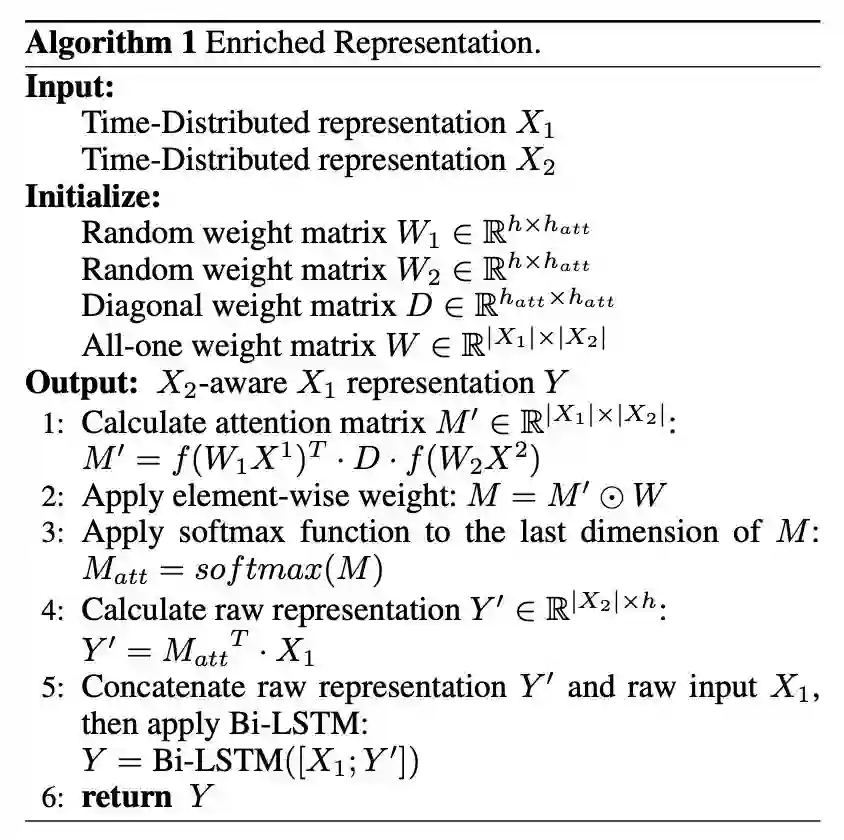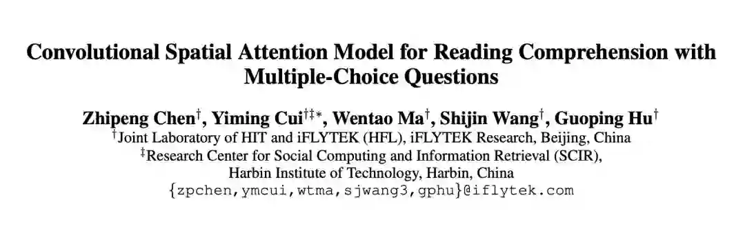 选择型阅读理解任务,需要通过阅读一个篇章,然后结合问题从候选答案中选择出正确的答案。本论文首先通过抽取篇章、问题以及选择之间的互信息来获得包含互信息的篇章、问题及选项的表示,然后进一步使用 Attention 方式计算出篇章、问题及选项之间的匹配矩阵,最后通过使用不同窗口大小的卷积神经网络来抽取匹配矩阵的匹配特征得到每个选择作为答案的概率。