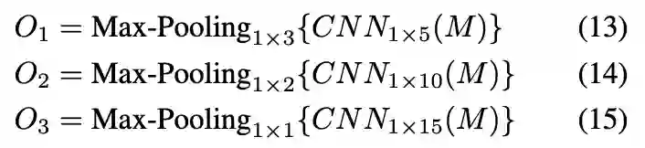 我们一共定义了三组卷积神经网络和对应的池化操作,分别用于抽取不同粒度的匹配特征。具体公式如图: