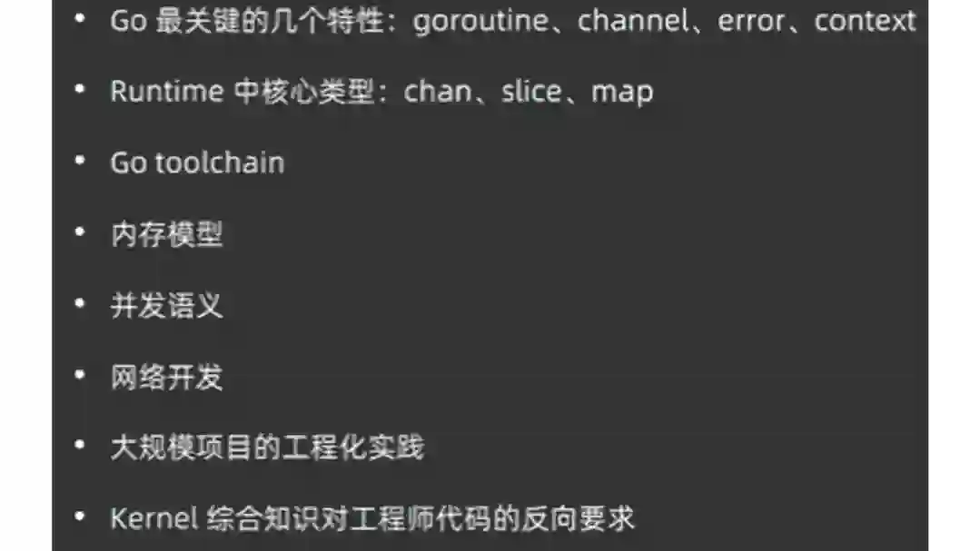 还整理了一些Go工程师成长路上需要了解以及掌握的软硬技能,都是大佬级别的视频分享,可以帮你扫清技术盲点并对自身提升路径更为清晰。
