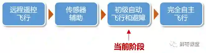 以无人机的飞行控制为例,以前的无人机是远程遥控飞行。后面就有了传感器辅助,能够更好地控制飞行姿态。再后来,就是现在,无人机可以实现初步的自动飞行和避障。将来,无人机将全面实现自主飞行。