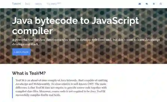 TeaVM 是一个 AOT 编译器(翻译器),可将 JVM 字节码翻译成 JavaScript 或 WebAssembly 格式,它和著名的 Google Web Tooklit(GWT) 有一定相似之处,但必须指出 TeaVM 并不需要 Java 源代码,而只需要 class 文件(JVM 字节码)。所以它能成功地用于 Kotlin 和 Scala 等基于 JVM 的语言。