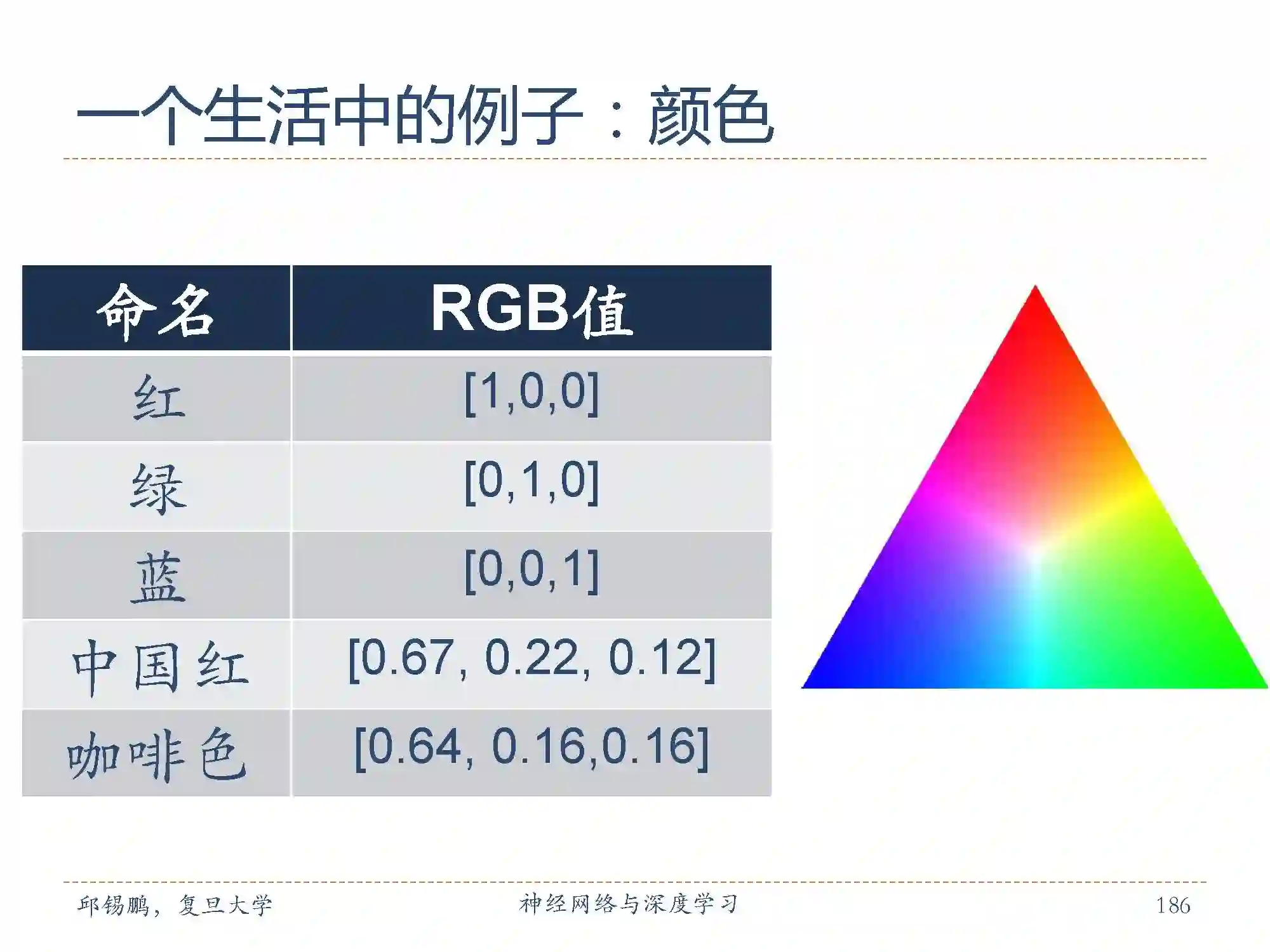 用一个三维的向量来表示颜色。红绿蓝向量表示是垂直的,作为三原色。