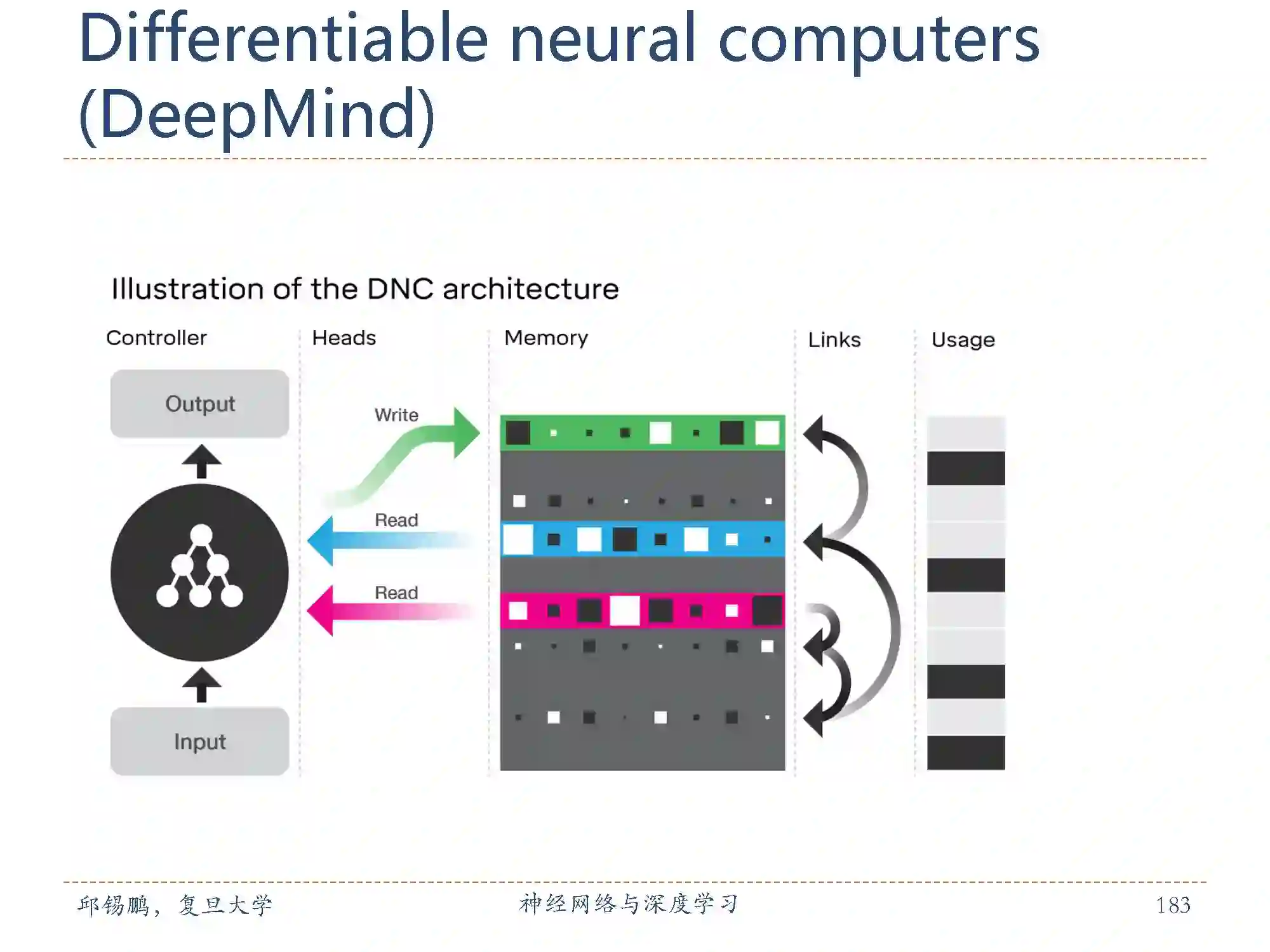 在去年10月,DeepMind 发表于 Nature 的一篇论文中,他们提出了一种叫做“可微分神经计算机”(DNC)的混合计算系统,将神经网络和一个外部存储器相结合。这个混合的计算系统既拥有神经网络可以从数据中学习的优势,也能够存储学到的知识——复杂的结构化数据。通过这个外部存储器,DeepMind 对神经网络进行了“记忆”增强,克服了神经网络无法长时间保存数据的缺点。