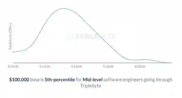于是,Triplebyte利用自身的平台,统计了硅谷众多科技公司对于软件工程师的年薪酬水平,以此新入行的人们提供一个参考。