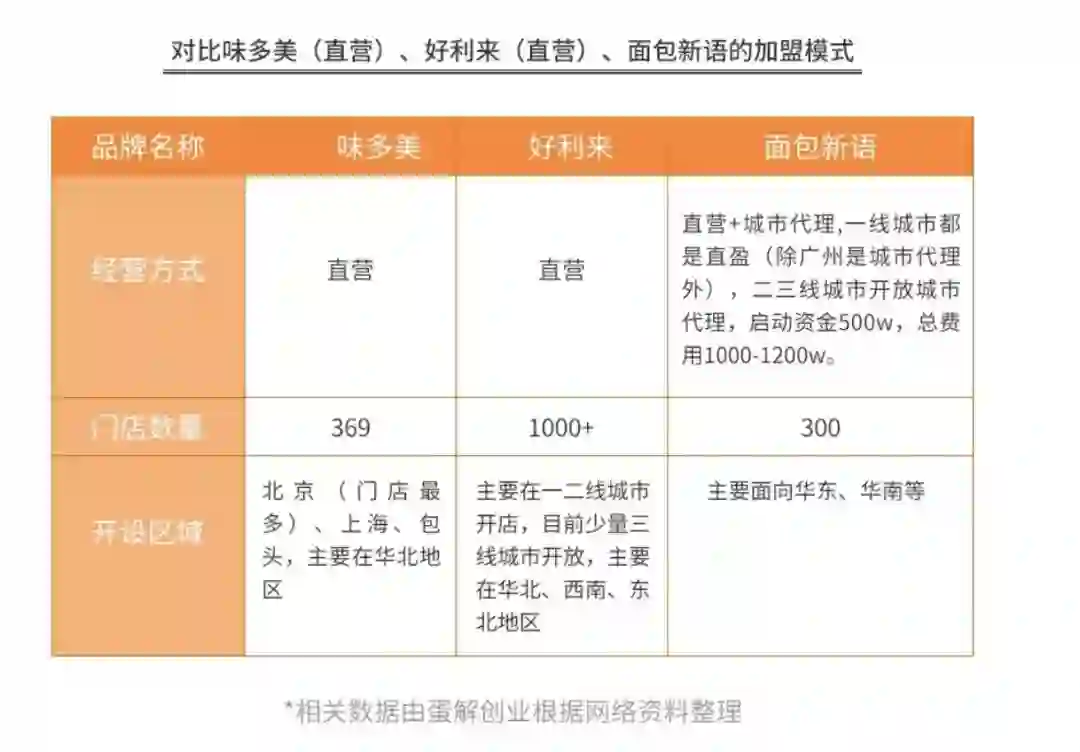 根据蛋解创业多方走访以及网络资料显示,面包新语在一线城市采取直营模式,二三线城市采用城市代理模式。