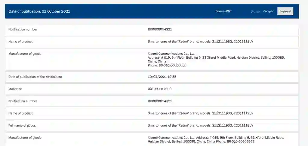 据媒体报道,新款 Redmi 10 已经出现在欧亚经济委员会 ( EEC ) 认证列表、IMDA、TKDN、SDPPI 和 莱茵 TÜV Rheinland 认证网站,此前也曾有网友在 IMEI 数据库中发现了 Redmi 10(2022)的手机的身影,预计它很可能与 Redmi 10(2021)采用类似的配置。网友 @Skrzypek 还在 IMEI 数据库中发现了 Redmi 10(2022)的踪影,型号为 21121119SG 和 22011119UY。