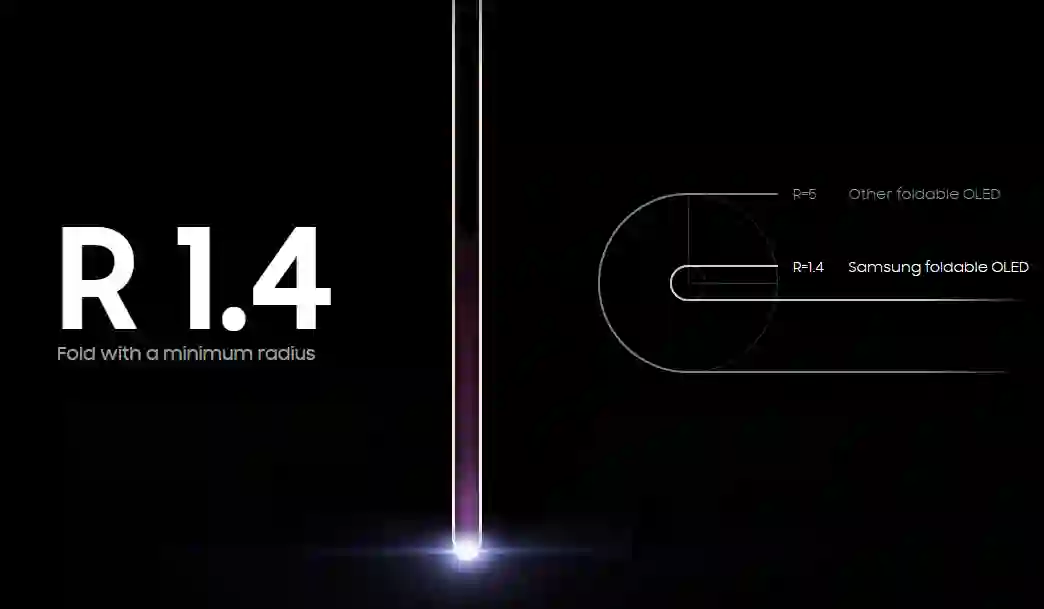 三星新款柔性 OLED 屏能够实现 1.4 R(1.4mm)的折叠半径,这样能够降低折叠屏手机/电脑的铰链设计成本与简化工艺,在这款屏幕的层与层之间三星使用了交错结构,这样可使折叠压力降至最低,实现超低曲率。