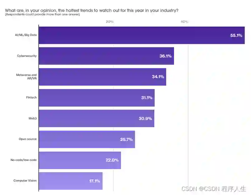 随着大量科技公司涉足元宇宙领域,以及行业对安全工程师的高需求和工资的增加。AI/ML/大数据、网络安全、元宇宙和AR/VR成为最受关注的三个领域。