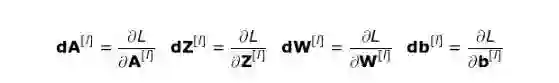 我们的任务是计算 dW [1] 和 db [l] (它们是与当前层参数相关的导数),以及 dA[l-1](它将被传递给前一层)。