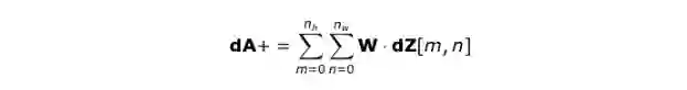 该操作可以用以下公式表示,其中 kernel 由 W 表示,dZ[m,n] 是一个标量,该标量属于从前一层所获得的偏导数。