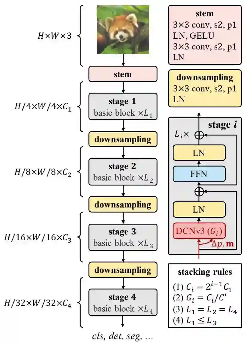 Stacking rules 为更清晰说明模块堆叠过程,作者首先列出了InternImage的超参: