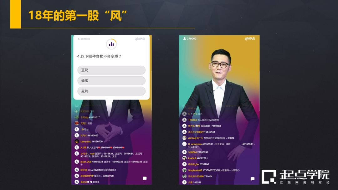 直播答题这种由来已久的节目形式,在18年,因为“王公子”的一条微博突然就火起来了。可以说是移动互联网在18年的第一股“热风”,和区块链、AI这些相比,丝毫不差。
