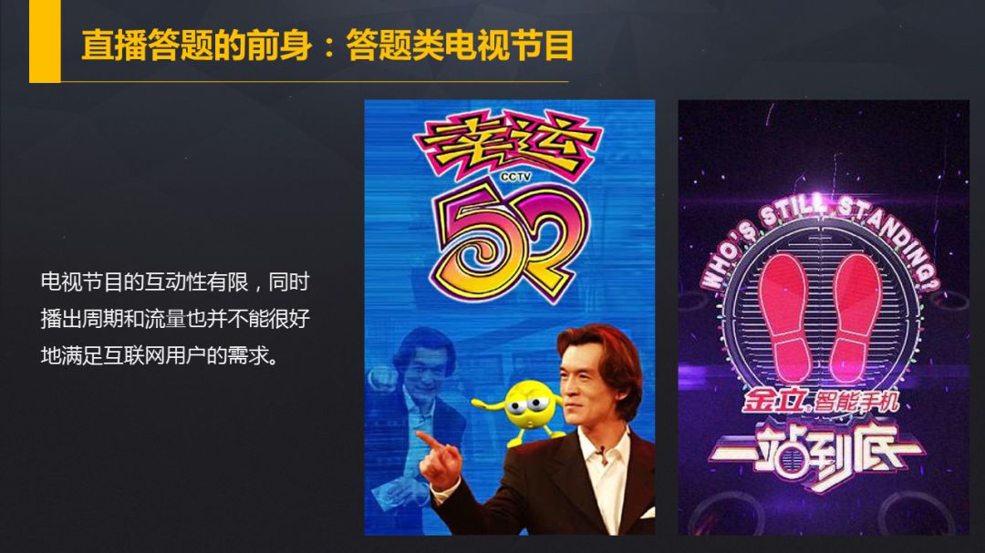 相对来说,电视节目的互动性有限,同时播出周期和流量也并不能很好的满足互联网用户的需求。但每一档答题类的电视节目都有很长的寿命周期。