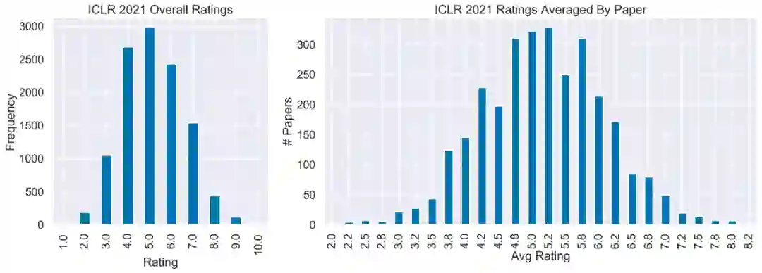 今年 ICLR 的论文评审得分集中在 5 分左右,平均值为 5.169。