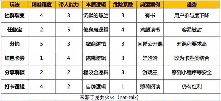 12. 去年几种常见的裂变玩法(ps《高阶运营》书中所举),今年都会以另外一种形式“改头换面”出现。转移到更好地渠道或者更新的形式。去年打火的朋友圈打卡玩法,就像张小龙演讲中所说,虽然用户的好友越来越多,但是刷朋友圈一直维持在半小时。打卡类在朋友圈效果今年会进一步遇到衰减,形式会转移到社群+小程序的组合上。
