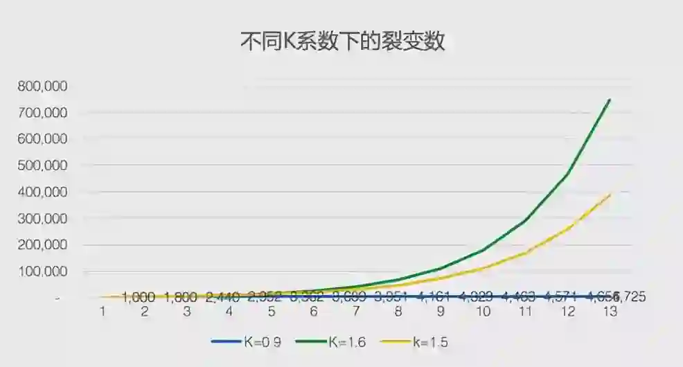 图:不同K系数下的裂变效果差异 by《高阶运营》