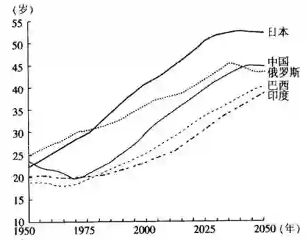 图:主要新兴国家人口中位数的变化