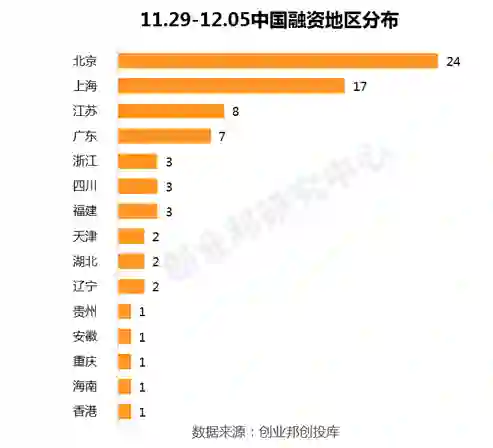 北上广融资事件共48起,占比63.16%;江苏超越广东排名第三,有8起融资事件。