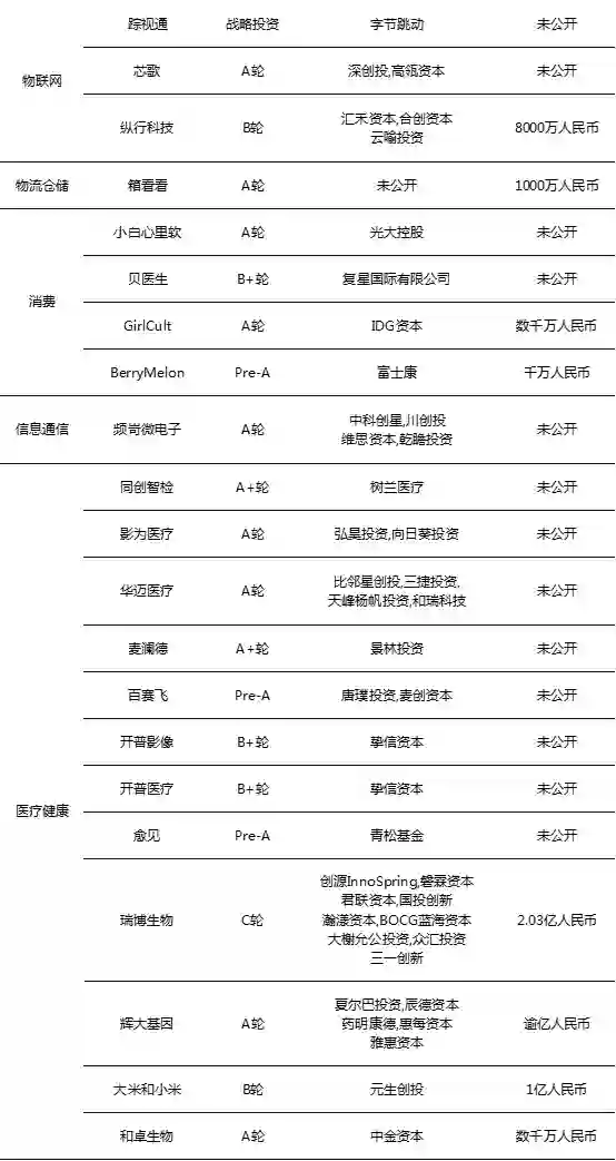 中后期(B轮、C轮、D轮及以后)有19起;战略投资本周有8起。