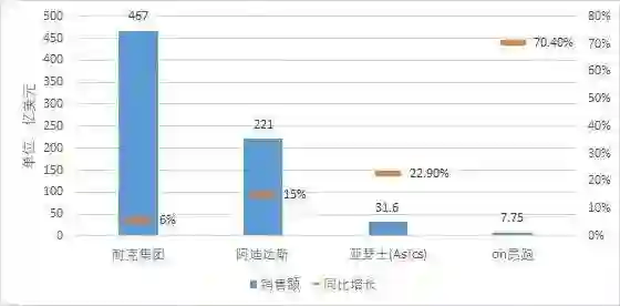 亚太市场在营收中占比仅为5.2%。但这也说明了On昂跑在这一地区,还有较大的增长空间。如耐克、阿迪等品牌在亚太市场的销售额占比都达到了30%以上。