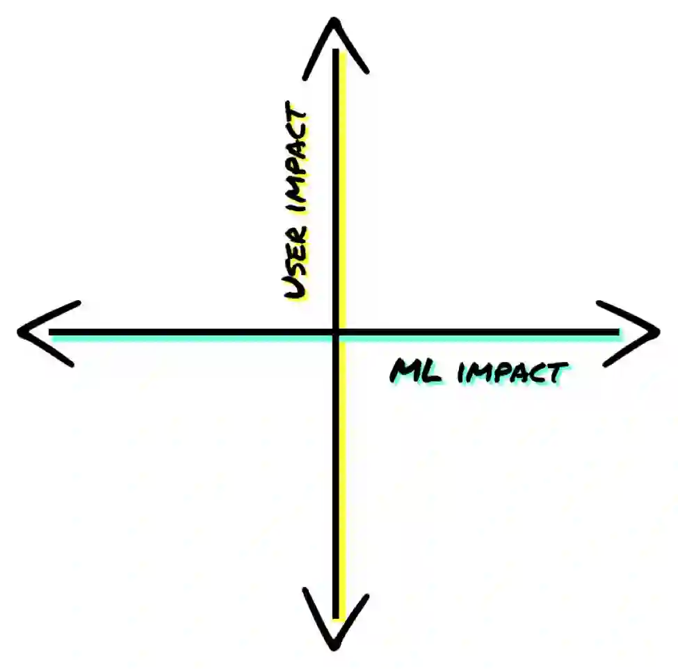 这有助于我们区分作用显著的想法和作用不大的想法,区分能够通过机器学习加以增强的想法和机器学习对其无甚帮助或帮助不大的想法。在这些对话期间,您应该已经开始与工程团队合作,但如果您尚未开始合作,那现在正是参照机器学习的发展现状衡量一下这些想法的好时机。您应当首先专注于机器学习能够以独特方式给用户带来最大影响(见上述矩阵右上角)的想法。