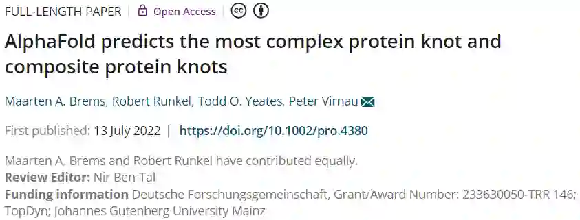 该研究以「AlphaFold predicts the most complex protein knot and composite protein knots」为题,于 2022 年 7 月 13 日发布在《Protein Science》。