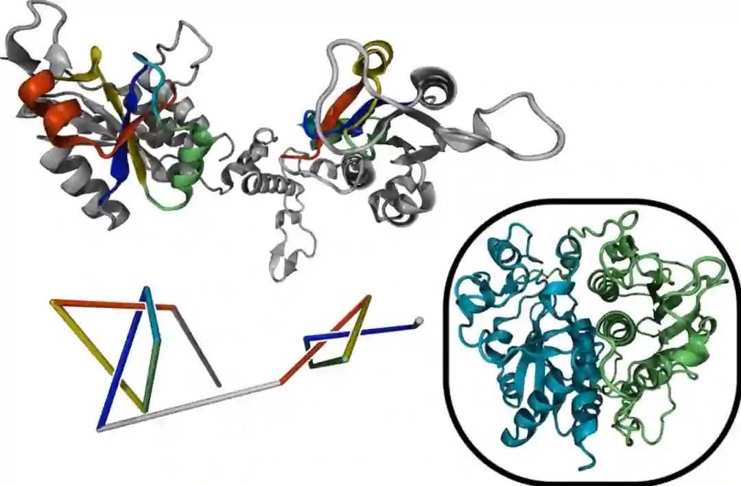 于是他们提出了一种基于基因复制和打结同源二聚体互连来生成这种复合结的新机制。有趣的是,这种机制类似于用于创建第一个人工蛋白质结的策略,其中未打结的二聚体被「连接」以形成三叶草。