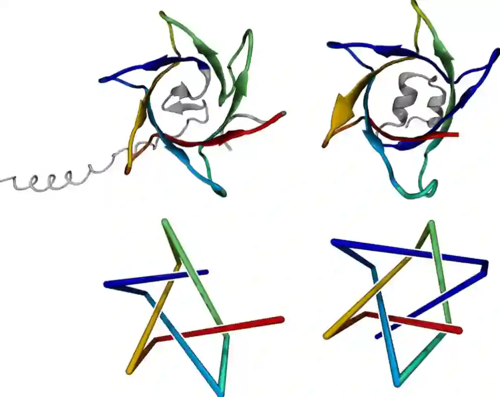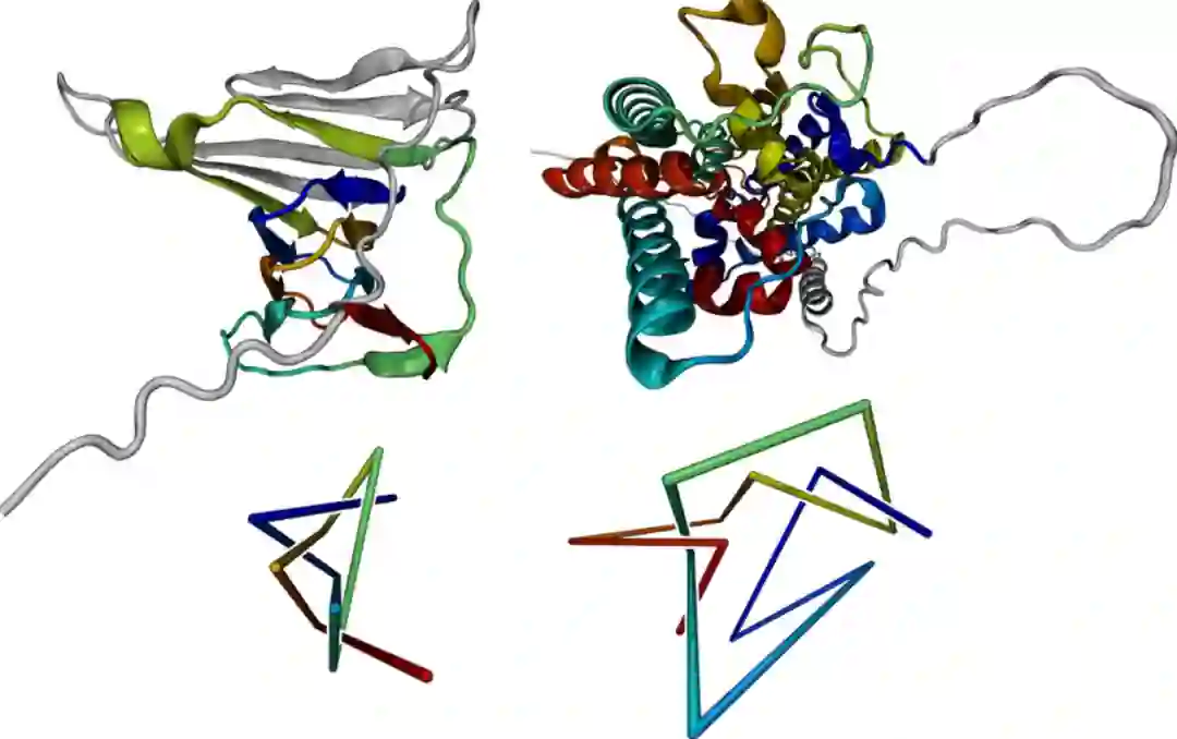 研究人员通过算法分析这些预测,发现蛋白质骨架表现出罕见的拓扑复杂性,即打结。