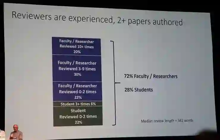 已经获得博士学位的学校教职人员、研究人员的比例为 72%,尚未获得学位的学生为 28%。对于有丰富学识的学者,现在有很多都到了企业任职。总的来说,这也是大家期待的「审稿人水平总体比投稿人水平更高」的体现。