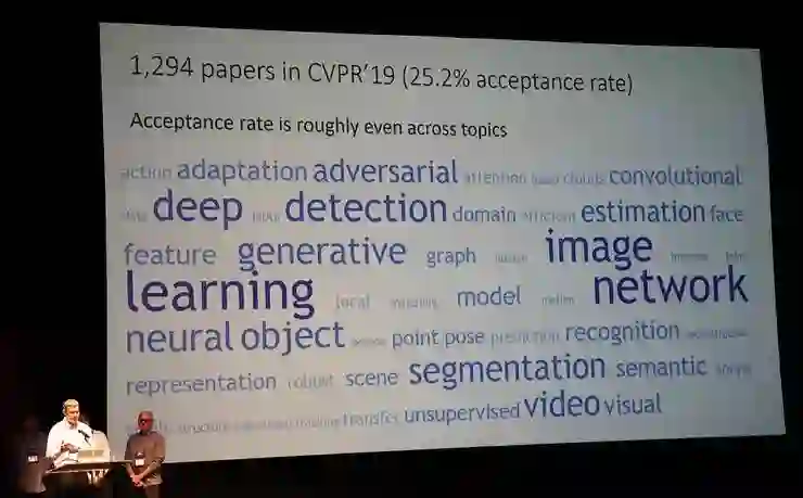 在开始宣布各个论文奖项之前,Derek Hoiem 首先介绍了本届 CVPR 中论文奖的评选流程。CVPR 2019有专门的最佳论文奖评选委员会(Best Paper Award Committee),评奖过程是首先由各领域的领域主席初选出他们认为非常优秀的论文一共 50 篇作为最佳论文候选名单,接着由最佳论文奖评选委员会从其中选出 4 篇获奖论文(2 篇最佳论文荣誉提名、1 篇最佳学生论文、1 篇最佳论文)