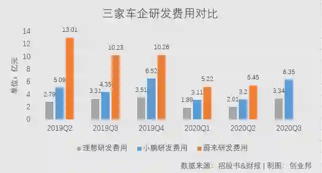 小鹏和理想在研发投入上虽不像蔚来那么阔绰,但也在全力投入。