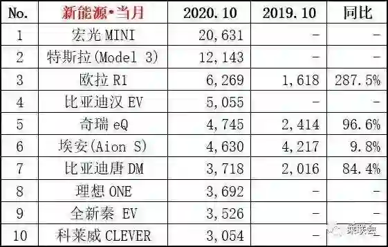 根据乘联会公布的10月新能源汽车销量排行,新造车企业的产品中,仅理想ONE一款车型入榜,位列第8。