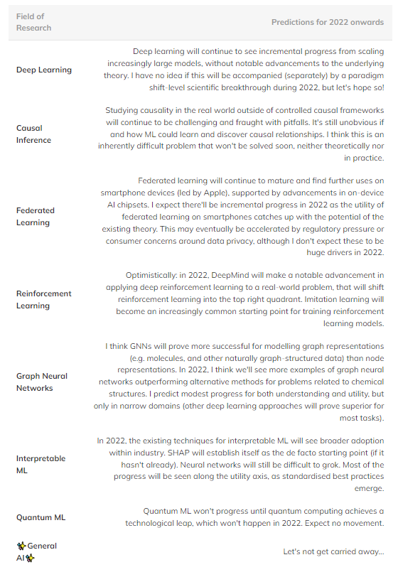 强化学习(RL)在国际象棋、围棋、扑克和 DotA 等游戏中达到了前所未有的能力水平。但在视频游戏和模拟环境之外,强化学习还没有令人信服地转化为现实世界的应用程序。机器人技术本应成为 RL 的下一个前沿领域,但这并没有实现——现实似乎比高度受限的玩具环境更具挑战性。也就是说,到目前为止,RL 的成就是鼓舞人心的,真正喜欢国际象棋的人可能会认为它的效用应该更高。我希望看到 RL 在将其置于矩阵右侧之前实现其一些潜在的实际应用。