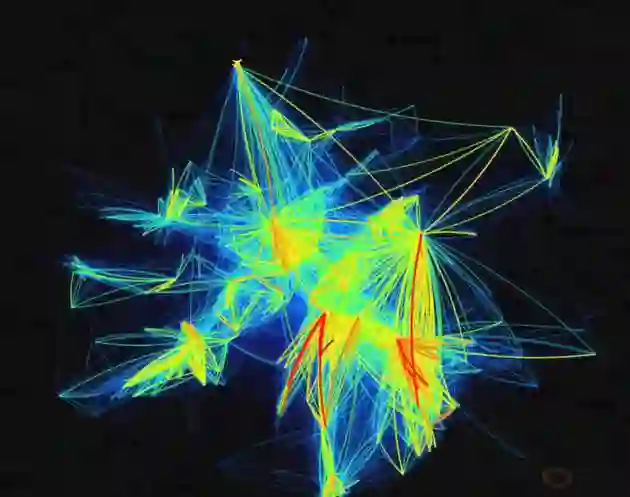 此外,基于OD绘制的东莞出行地图也展现出,以多个活跃区为中心的城市走廊形成了一系列的簇,如巨网一般将整座城市覆盖。